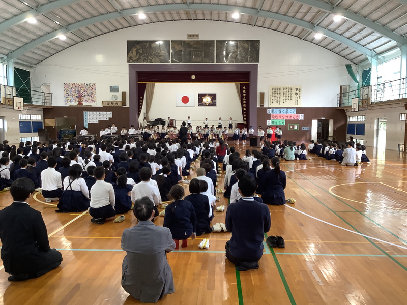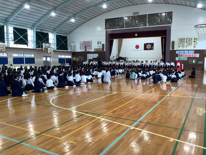 いよいよ音楽会まで1週間となりました。今日の学校集会で「リハーサル」を行いました。「鉄腕アトム」の合奏と「Wish~夢を信じて~」の合唱を披露しました。素敵な音色の合奏とやさしい声色の合唱が聴けました。12日の「水俣市音楽祭」が楽しみです。