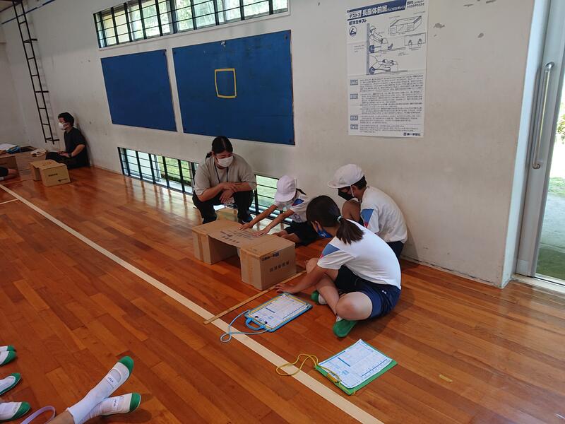 体育館では長座体前屈や立ち幅跳び、反復横跳びを行いました