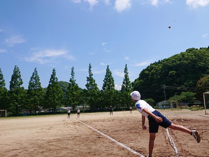 大運動場ではソフトボール投げを行いました