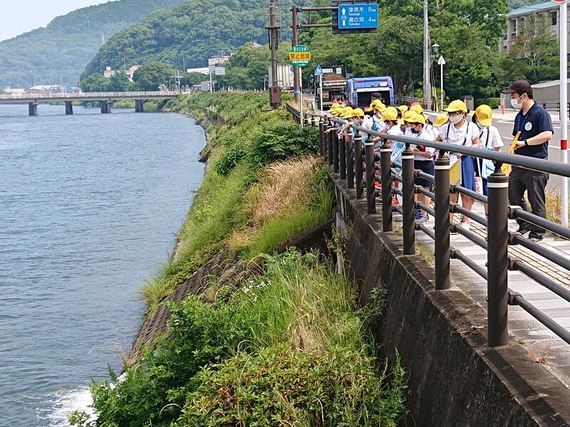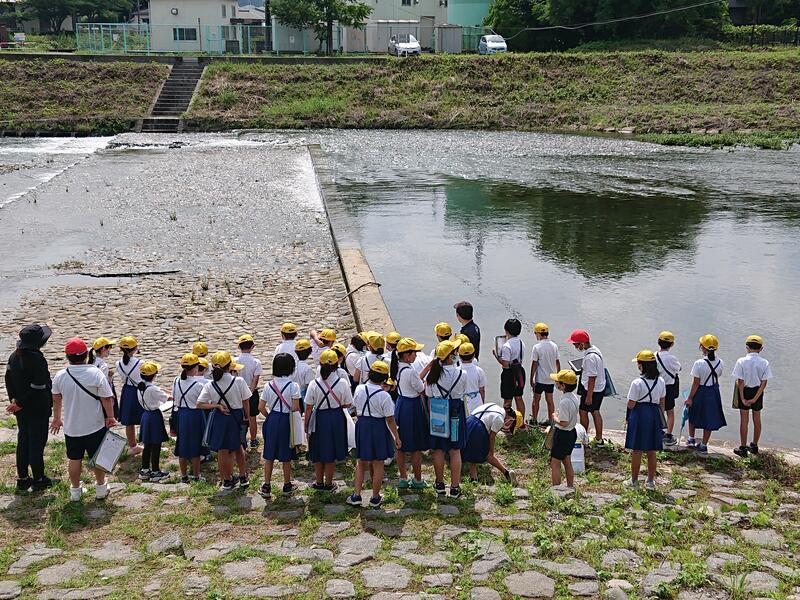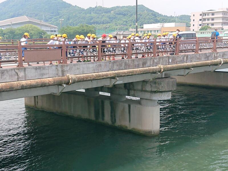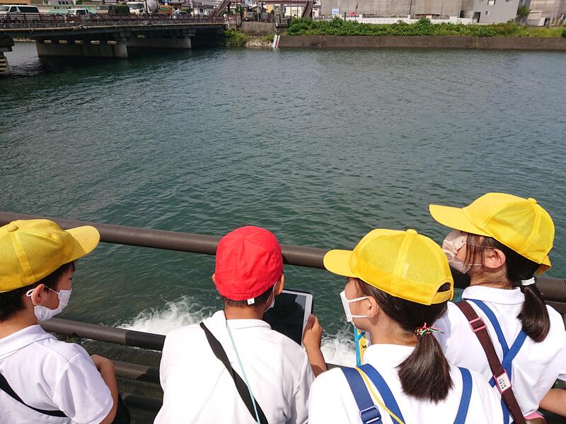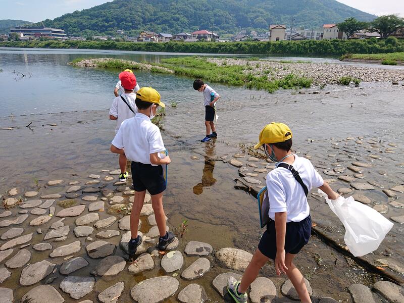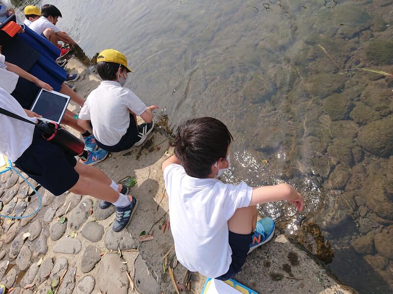 今回は、水俣川の「生き物」「川の様子(水のゆくえ)」「川の周りのもの(安全)」「環境」「役割」「歴史」について調べるグループにわかれ、自分の調べていきたいテーマに沿って前回より詳しく水俣川周辺の様子を観察しました