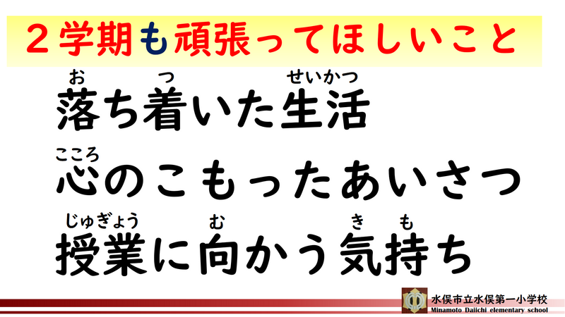 校長からは、2学期もがんばってほしいこととして、次の3つのことを意識してほしいという話がありました