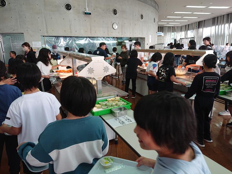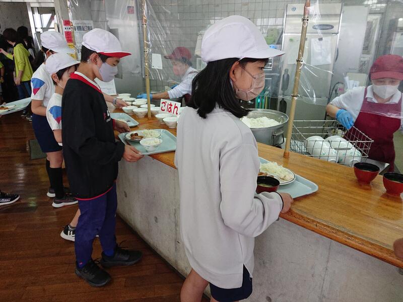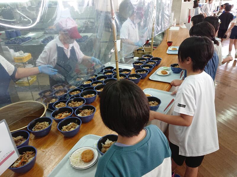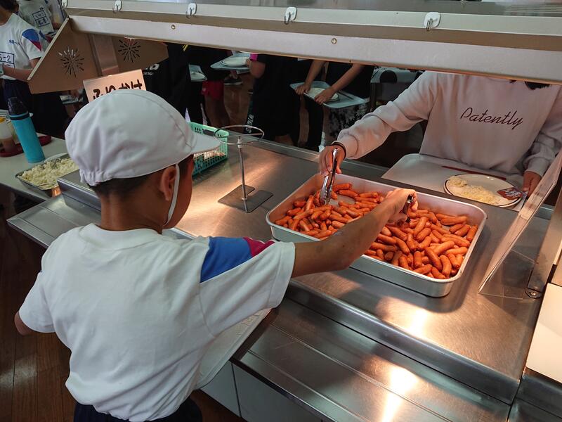 子供たちが写真を撮り「献立」「感想」を書いています。
