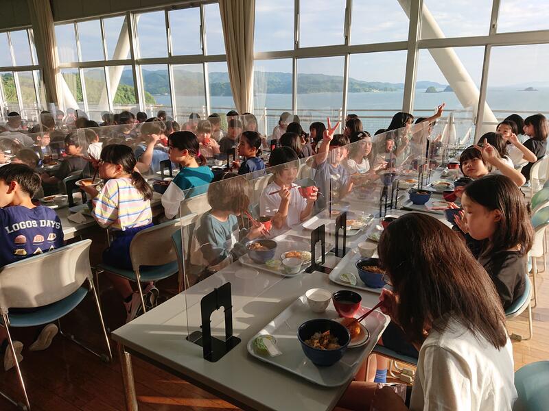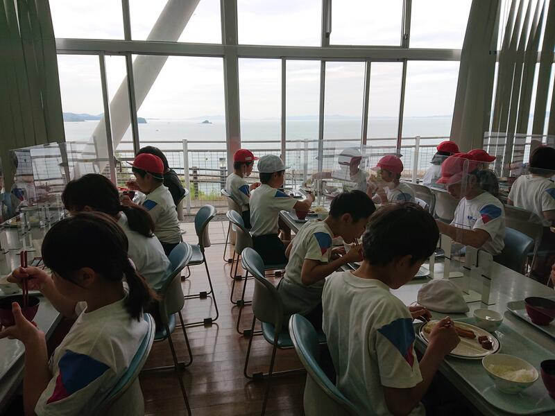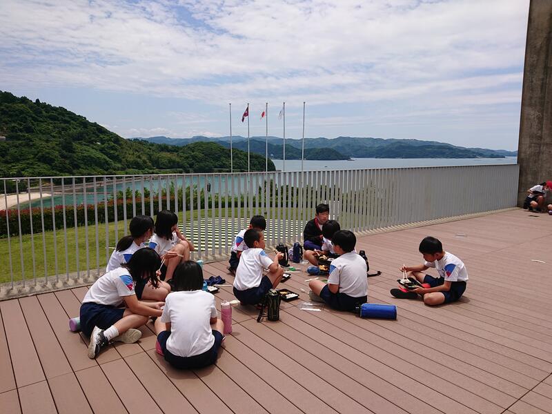 所内ウォークラリーの後は、海を眺めながらの昼食でした