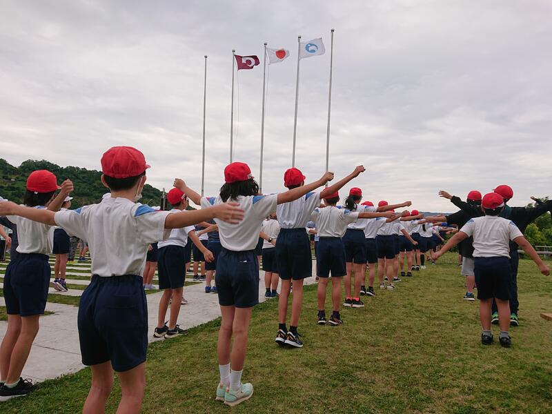 他校と合同の朝のつどいでは、自分たちのことを紹介したり、ラジオ体操に取り組んだりしました