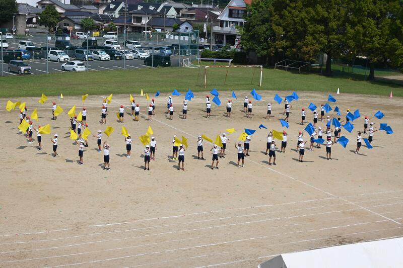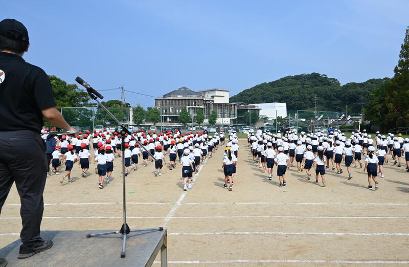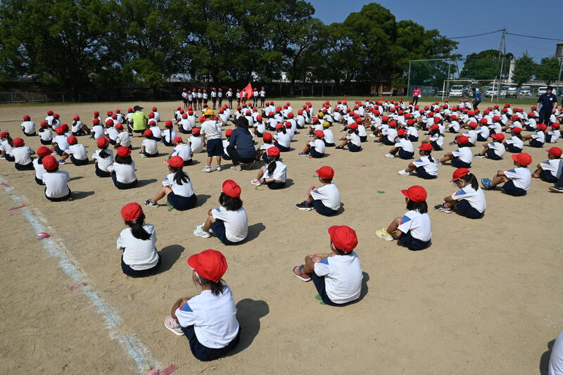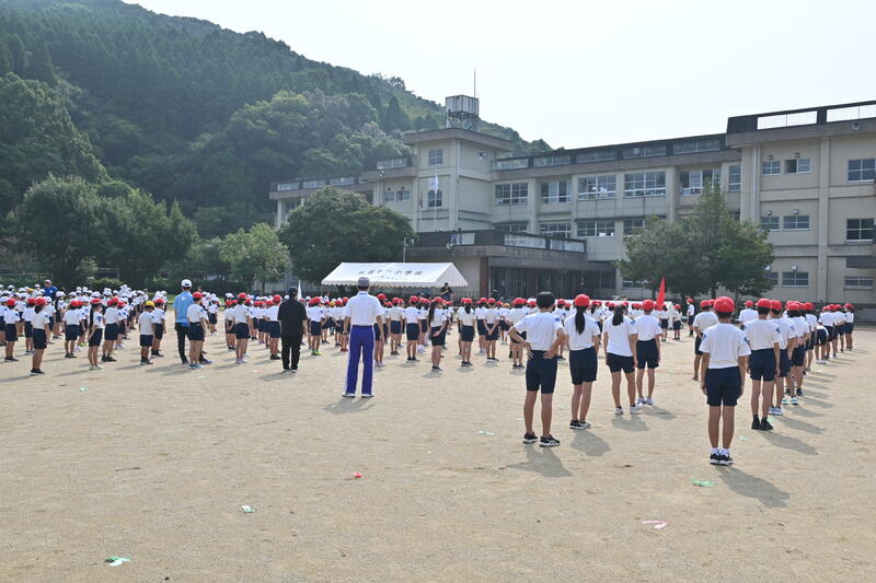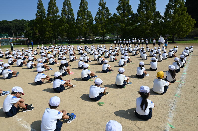 9月11日(月)、2校時に初めての全体練習を行いました。暑さもまだまだ厳しい中ですが、みんな元気に集まり、開会式の練習を行いました。