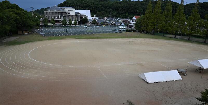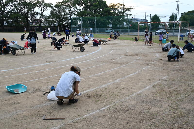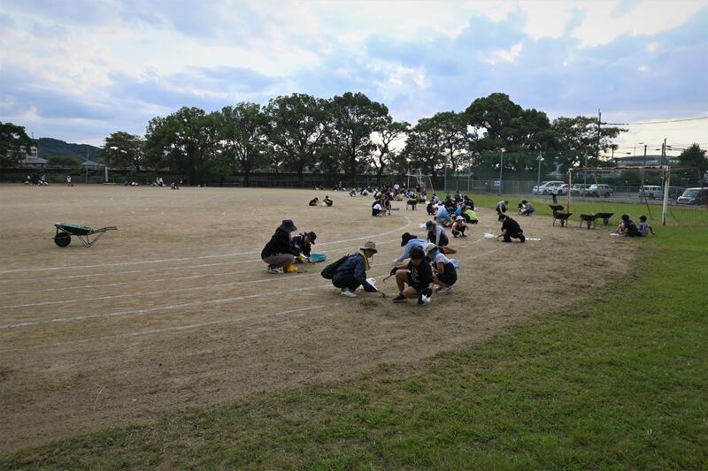 1日目の様子です。大運動場周りの草刈り、小運動場の整備も行っていただきました