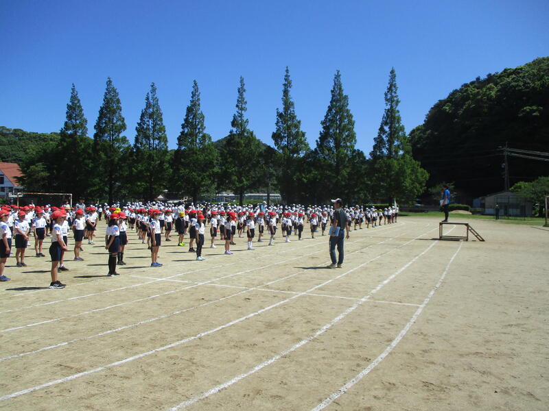 今日は初めての全体練習を行いました。全校児童が揃って開会式の練習や応援団の結団式を行いました。今年最初の全体練習ということもあり慣れないところもありましたが、これからに向けて気持ちを新たにできたのではないでしょうか。運動会まであと11日(授業日)です。がんばっていきます。