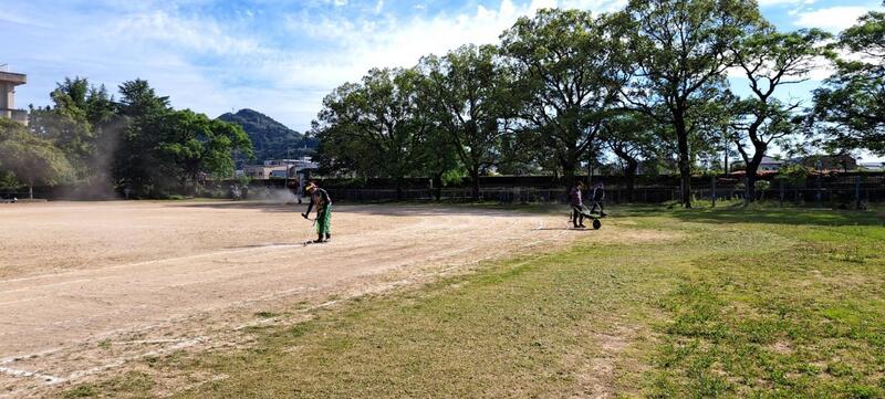 運動会に向けて運動場の草刈りを行いました。