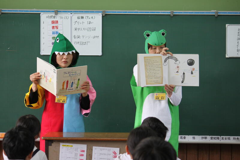 今回は中学年(34年生)で「おはなしレンジャー」の方々に読み聞かせをしていただきました。
