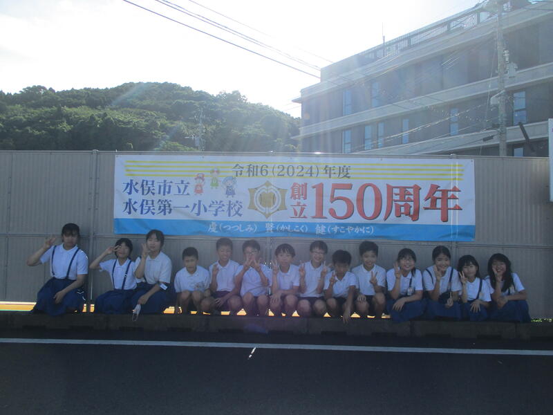プロジェクト委員会の子供たちが横断幕を貼りました。