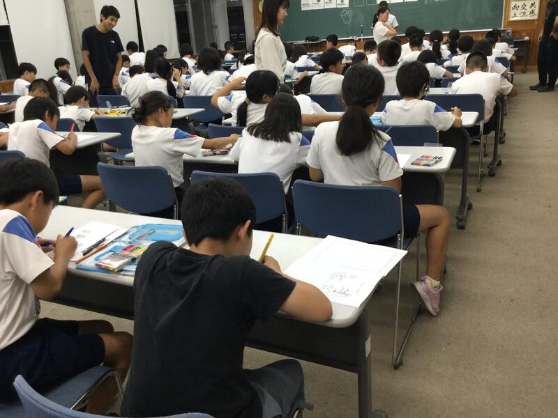 一人一人が準備したイラスト等見ながら丁寧に書いていました。