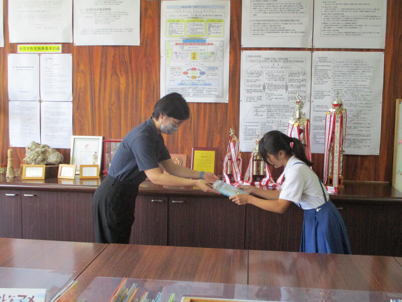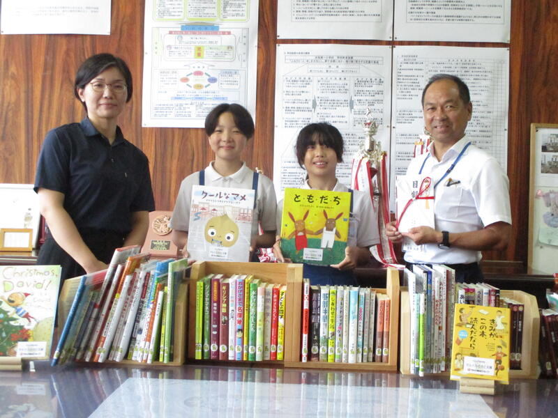 本校の子供たちが読書を通して成長できるようにと74冊の新書をいただきました。