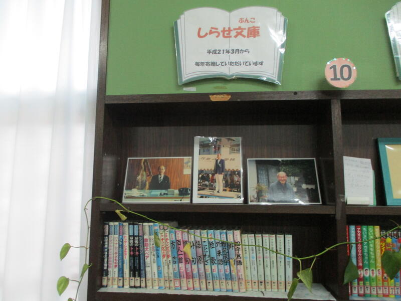 毎年、本を寄贈していただいており、図書室に「白瀬文庫」コーナーをつくり、大切に読ませていただいています。