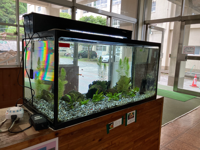 本校舎の入口ロビーにある水槽をきれいにしていただきました。