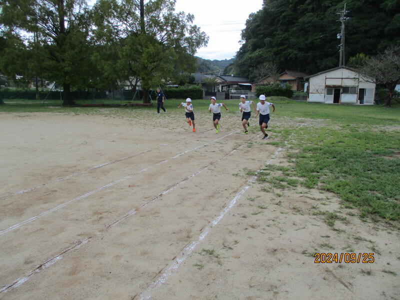 10月10日に行われる陸上記録会に56年生が参加します。今日から陸上記録会に向けての練習(合同体育)を始めました。100m、800m、ソフトボール投げ、走り幅跳びの種目に分かれて参加します。また、それぞれの学級の代表1チームが400mリレーに参加します。来週、再来週と3回の練習を行います。一人一人の子供たちの記録が伸び、体力が高まることを期待して練習に励みたいです。