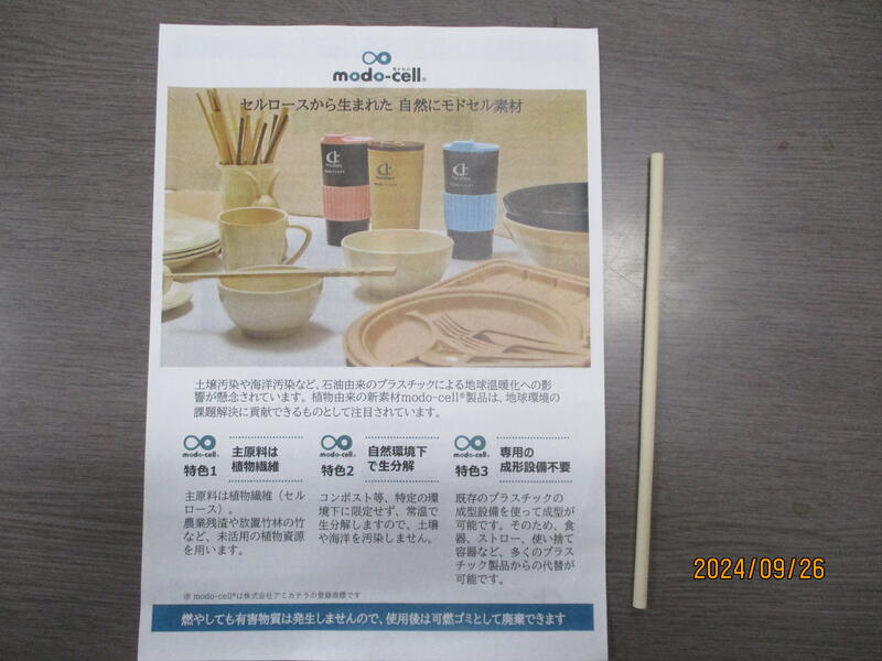*竹(セルロース)ストローは子供たち全員に配っています。植物由来の材料でつくられ自然にやさしいストローなのでぜひご家庭で活用ください。