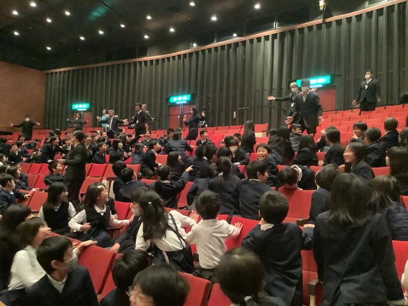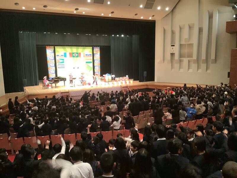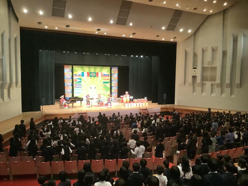 今日は全校児童で音楽鑑賞会に行ってきました。子供たちは今日の観賞会を楽しみにしていました。ラテン音楽にのって楽しそうに曲に合わせて踊ったり掛け声をかけたりしていました。子供たちは、「音楽に合わせて踊るのが楽しかったです」「クインカという楽器の音が面白かったです」等と話していました。久しぶりに全校児童でコンサートを楽しめました!