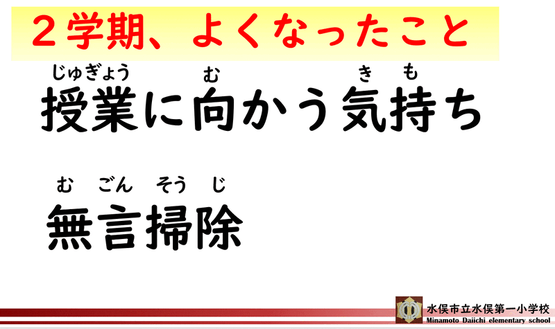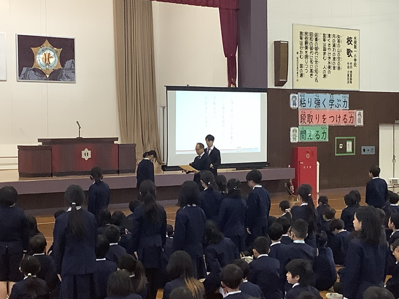 2学期の終業式を24日に体育館で行いました。全校児童が静かに集まり厳かな雰囲気で行うことができました。校長先生のお話では「2学期よくなったこと」「冬休みの過ごし方」「150周年にむ向けて」の3つの話がありました。終業式の後には表彰を行いました。子供たちはいちばん長い2学期の78日間を頑張って過ごしました。お正月等充実した冬休みを過ごし、3学期の始業式に元気な姿で会えるのを楽しみにしています。皆様もよいお年をお迎えください。