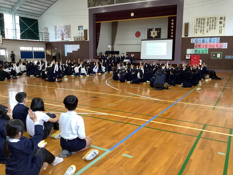 2月の児童集会を行いました。今月は美化委員会と保健委員会の発表でした。美化委員会は普段の取組や掃除時間の約束になどについて話してくれました。保健委員会は健康管理等について話してくれました。クイズもあり学んだことをしっかかり確認できました。最後に須惠先生から地域での遊び方について話がありました。