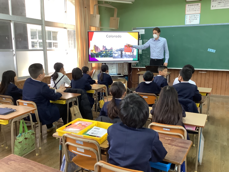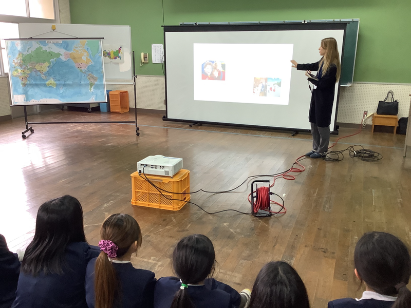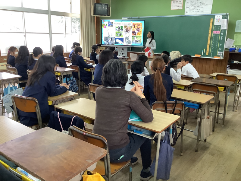 2月25日に4年生が総合的な学習の時間に3人のゲストティーチャーを招いて国際交流を行いました。ALTのジェイソン先生、マロリー先生、CIRのマーシャさんにアメリカ、カナダ、ロシアについて話していただきました。それぞれの国の特色や文化を分からりやすく話していただきました。子供たちは、意欲的に話を聞き多くの質問をしていました。その後は、クイズ、ゲーム、百人一首で交流を深めました。