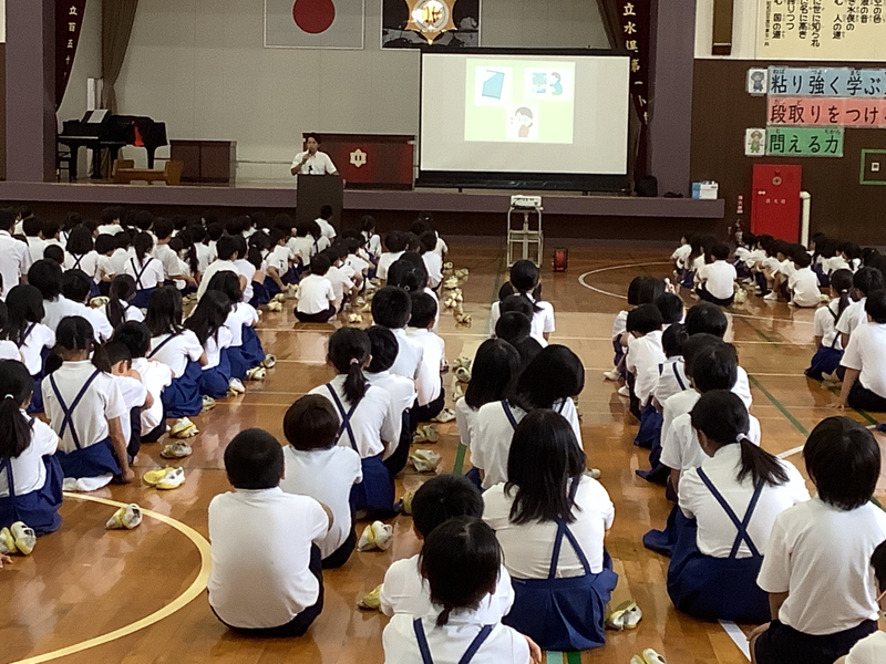 2月の児童集会を行いました。今月は美化委員会と保健委員会の発表でした。美化委員会は普段の取組や掃除時間の約束になどについて話してくれました。保健委員会は健康管理等について話してくれました。クイズもあり学んだことをしっかかり確認できました。最後に須惠先生から地域での遊び方について話がありました。