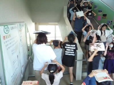 平和集会で歌う『HEIWAの鐘』の練習に取り組んでいます