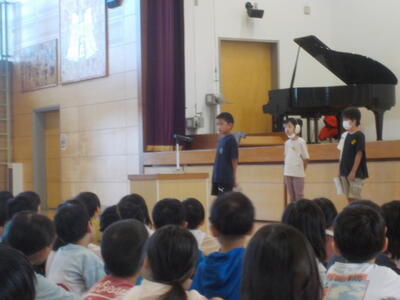 これまではコロナ禍の中で集会の実施に制限がありましたが、今回のようにたくさんの人の前で発表することは大きな自信につながります。高学年の子どもたちの、これからの活躍がますます楽しみです。