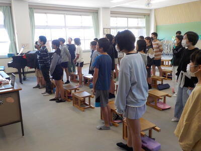 平和集会で歌う『HEIWAの鐘』の練習に取り組んでいます