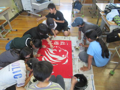 応援団・団画・スローガンに分かれて練習、製作を行っています。