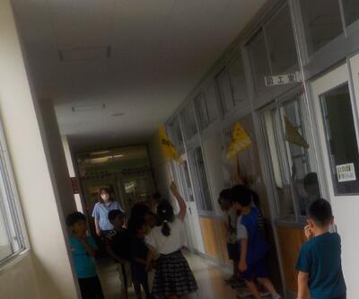 つい最近、また能登の方で大きな地震がありました。7年前の熊本地震もいまなお復旧復興の途中でもあります。子どもたちはまず自分を守る姿勢をし、そのあと運動場に避難して整列・集合するという流れで避難しました。その後校長先生から「今回は学校で地震が起きたときを想定しての訓練でした。地震はいつ起こるかわかりませんよね。能登半島の地震も、熊本地震も家にいるときの地震でした。みなさんもおうちの人と、もし地震がおきたときにどう行動すればいいのかを話し合ってみてください。」とお話がありました。ぜひ子どもたちとご家庭でも話題にしていただけたらと思います。