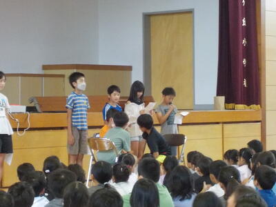 前期終業式では、2・4・6年生が前期に頑張ったことや後期に頑張りたいことを発表しました