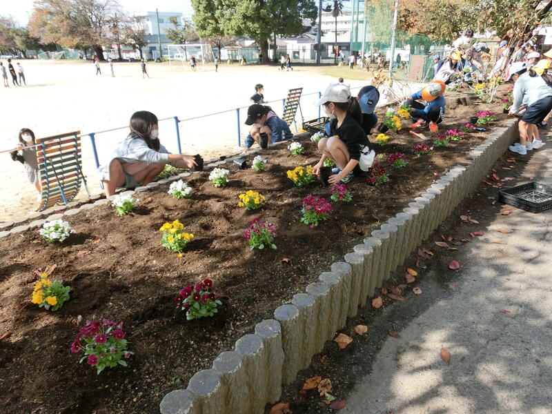 11月14日の昼休みに緑化委員会を中心に花壇の花植が行われました。委員会のメンバー以外にも1年生から6年生の児童も参加しました。この冬きれいなビオラがたくさん咲いてくれることでしょう。