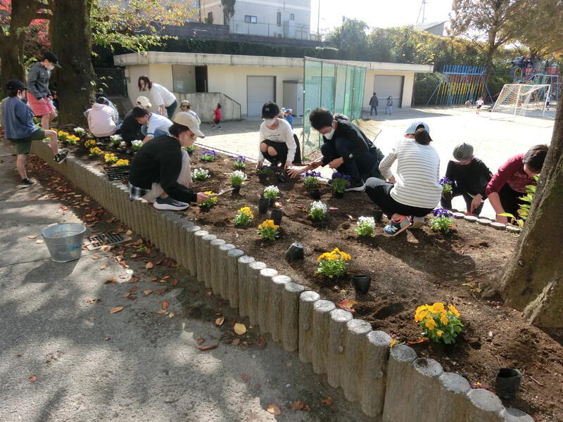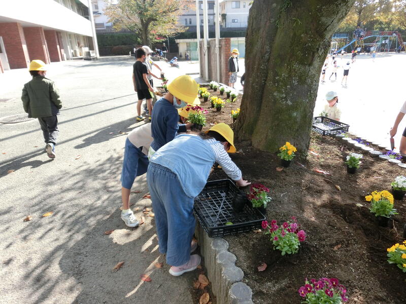 11月14日の昼休みに緑化委員会を中心に花壇の花植が行われました。委員会のメンバー以外にも1年生から6年生の児童も参加しました。この冬きれいなビオラがたくさん咲いてくれることでしょう。
