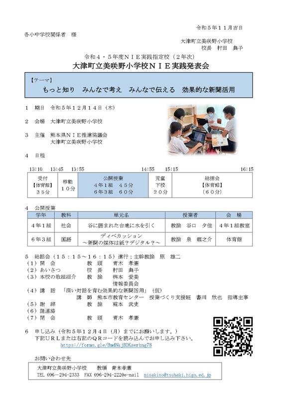 令和5年12月14日(木)の午後に、NIE実践発表会を開催します。