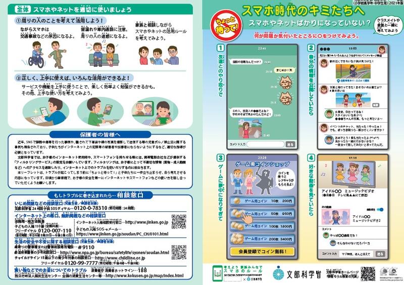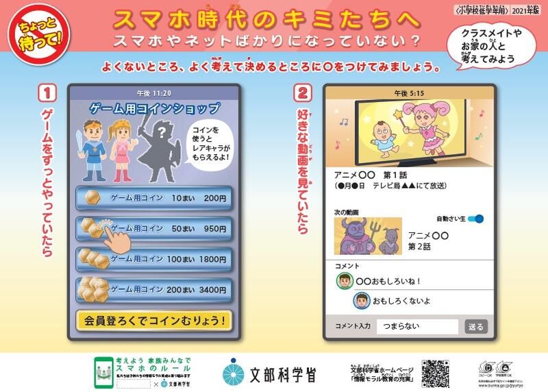 文部科学省作成資料「スマホ時代のキミたちへ(中髙学年用)」
