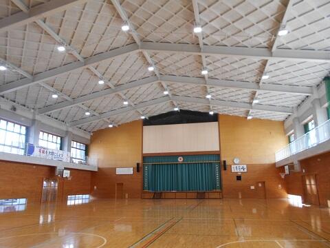 1月末に体育館の照明のLED化工事が終わり、とても明るい体育館になりました。これまでのように完全に明るくなるまで待つこともなく、スイッチを入れるとぱっと明るくなります。明るくなった体育館に子供たちも喜んでいます。