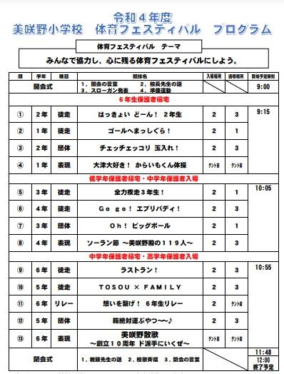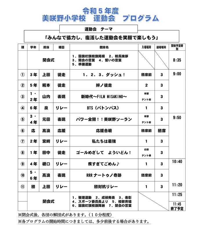 本日(5月25日)運動会を実施します。ご理解とご協力をよろしくお願いします。日程は以下のとおりです。