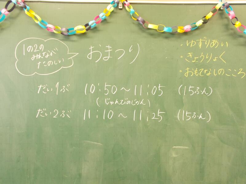「いらっしゃいませ」とお客さんを呼び込む気合の入った声や様子、ゲームを説明する姿、お祭りの内容など、まだまだ黄色い帽子の似合う1年生ですが、大きく大きく成長していることを感じ、幸せな気持ちになりました。