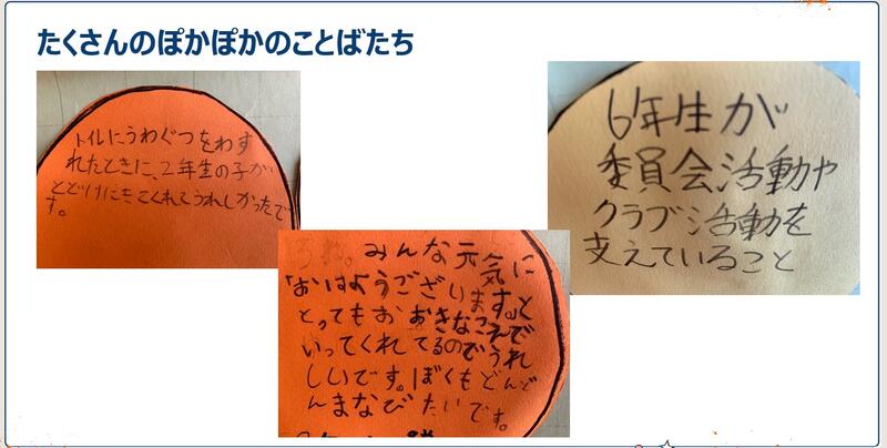 多くの皆さんのご協力のおかげで、学校の教育活動を行うことができていることを改めて実感しました。これからも、子どもたちとともに、学校生活を充実させていきたいと思います。