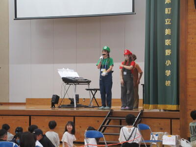 10月8日の昼休みには、お店等のお手伝いをする子どもサポーターの打合せが体育館で行われました。