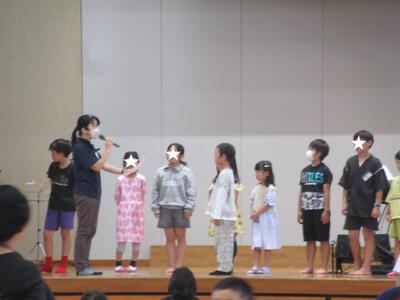 途中には6年生の代表児童による指揮体験コーナーや、オーケストラの伴奏で「ビリーブ」や「校歌」を歌う共演コーナーもありました。