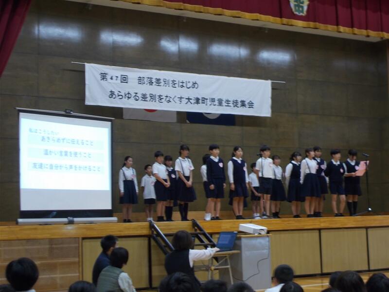 大津北中学校にて「第48回 大津町児童生徒集会」が行われました。この集会は、町内の小中学校の児童生徒が集まり、自分自身や身の回りにある差別に気づき、行動し、なくしていく仲間としてつながる大切な機会となっています。