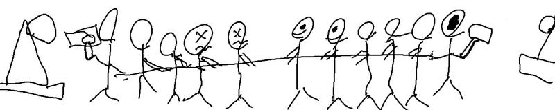 人数が多すぎて印がたりないときも、それくらいの距離をとっています。
