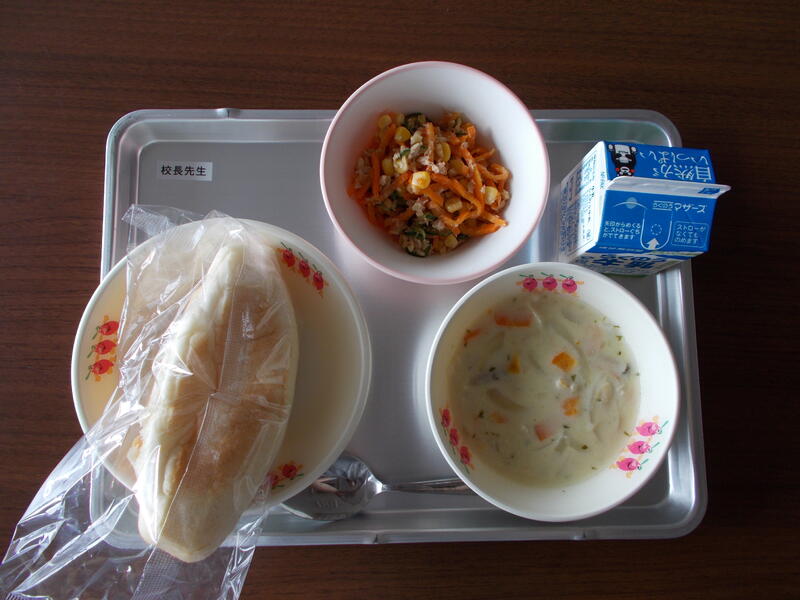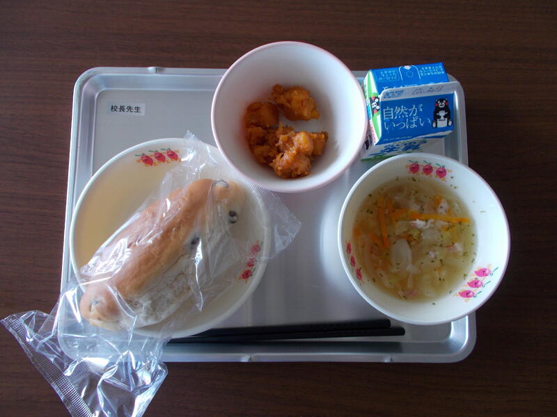 今日はからいもデー。大津産のからいもを使ったクリームスープでした。やわらかく、ほんのりとした甘みを味わいながらいただきました。