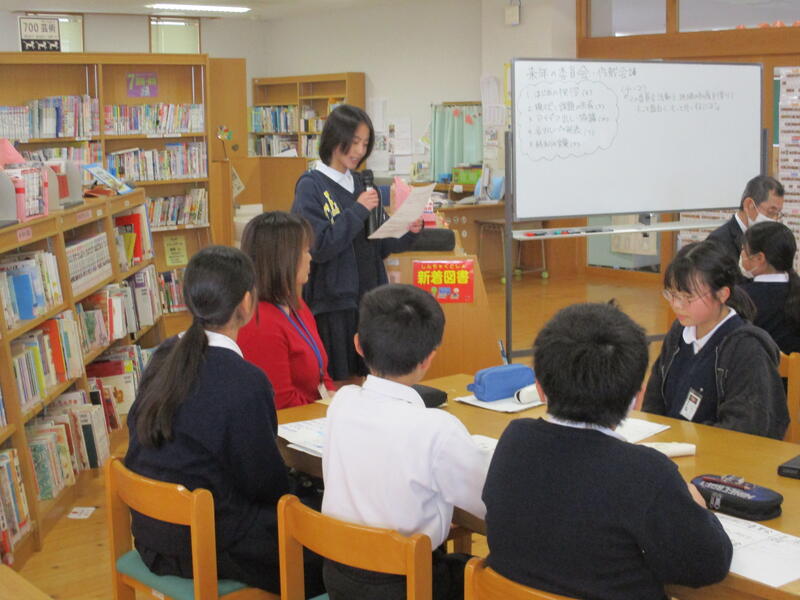 ワークショップでは6年生の委員長が活動報告を行い、5年生の新委員長が来年度のアイデアを発表しました。