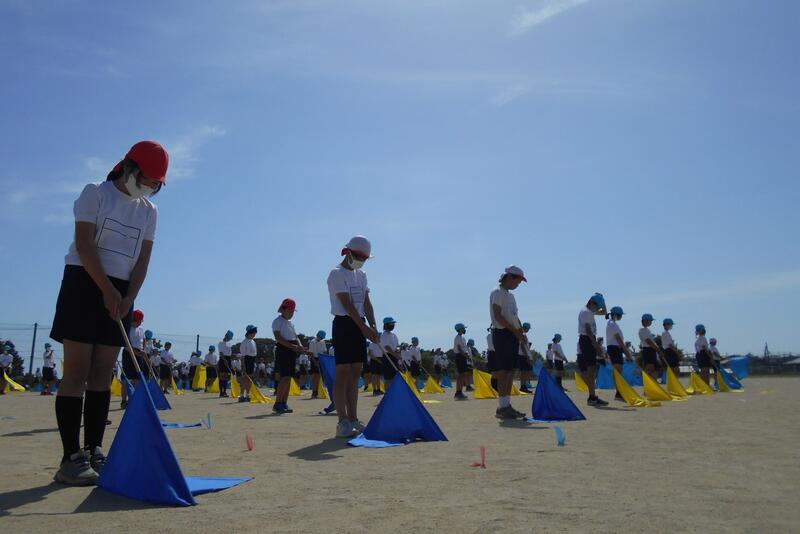 来週はいよいよ運動会です。5・6年生は合同で旗を使った表現競技に取り組んでいます。とてもかっこいい演技に仕上がっています。