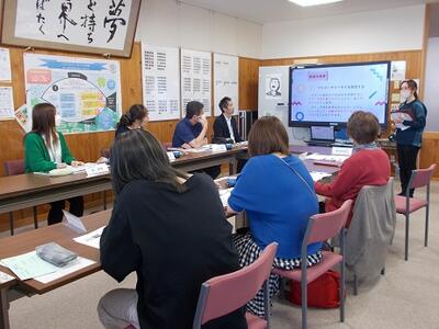 本年度の学校経営方針については、校長の説明の後、本年度の新たな取組のwell-beingについて、担当のWBCから説明をしました。