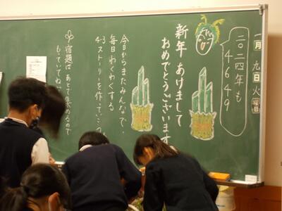 新しい年の始まりということで、各教室には、 担任からの 思いのこもった ”おはよう黒板”がありました。