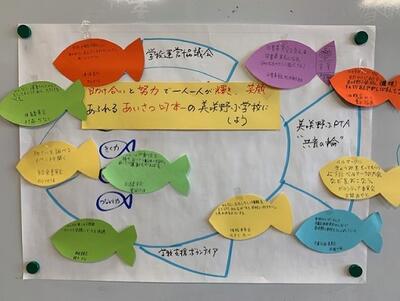 中央には 児童会目標 そのぐるりに 委員長の書いた決意
