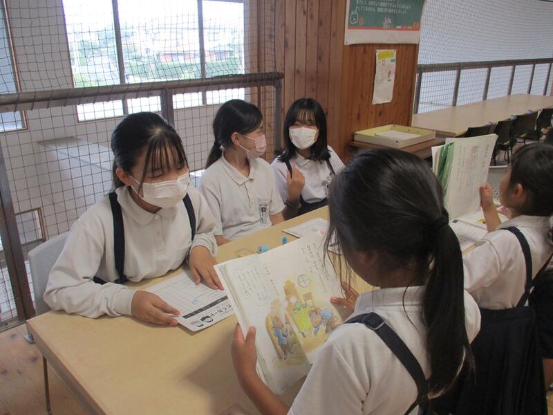 名付けて「学習サロン」。1年生が本読みを聞いてもらったり、プリントを見てもらったり、先輩に教わる姿が微笑ましいです。